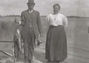 John Takala arrives at Pelican Lake, traveling an epic route: by canoe from Tower across Lake Vermilion, up the Vermilion River, along the Pelican River, and finally reaching Pelican Lake. Later that year, he and his bride Matilda travel by train from Virginia to Ashawa (now Cook) and walk 24 miles with their belongings to start their new life.